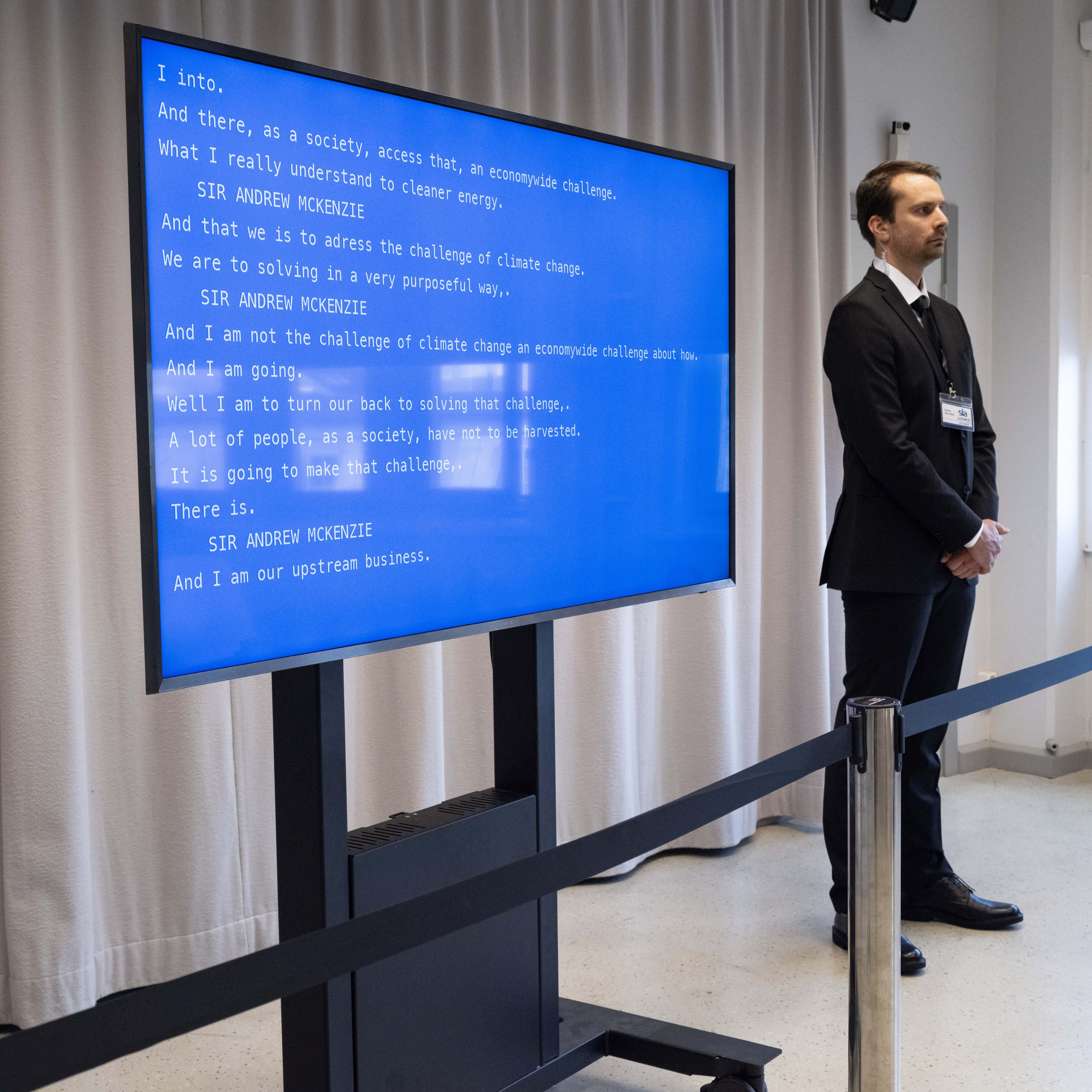 A partial reconstruction of the fossil fuel company Shell’s Annual General Meeting, presented as a series of events taking place at IAC and in front of the Mazettihouse. Using installation, theater, and custom computer software, the work unfolds and recontextualizes the company’s discourse, aesthetics, and safety measures.
